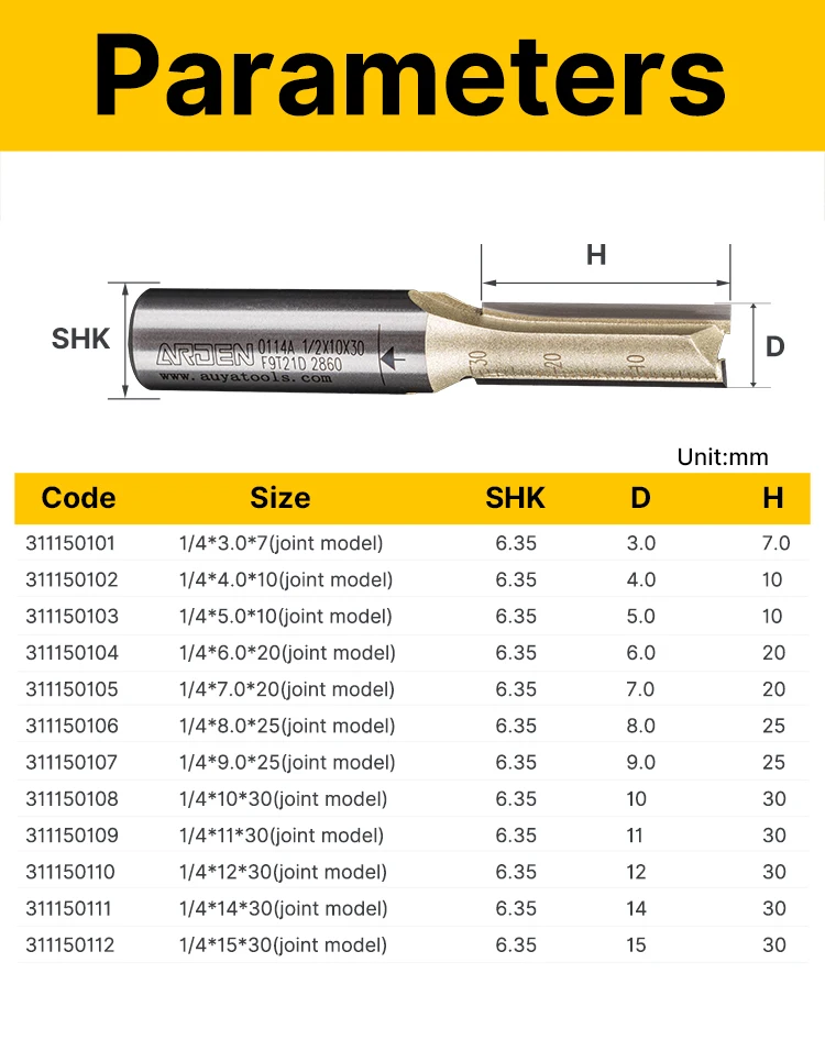 | cutter type | Arden 1/4 two flutes straight cutters |