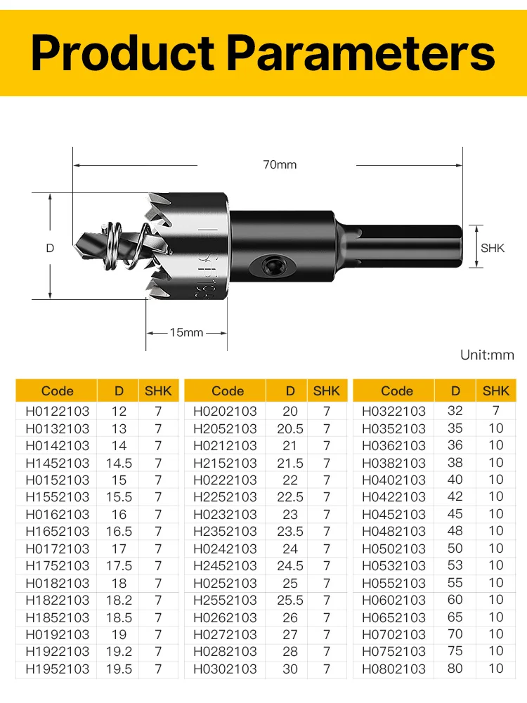 Home » Product Category » Hole Saw » HUHAO 12-80mm saw diameter metal hole saw 15mm width drill hole bits for handle drill drill hole machine
