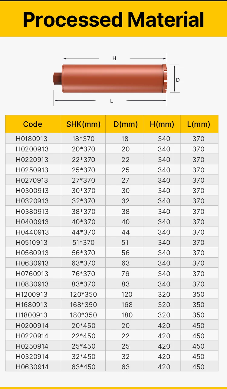 Home » Product Category » Hole Saw » HUHAO 18-180mm saw diameter concrete drill hole bit CrV 340-420 mm depth brick wall hole saw add water