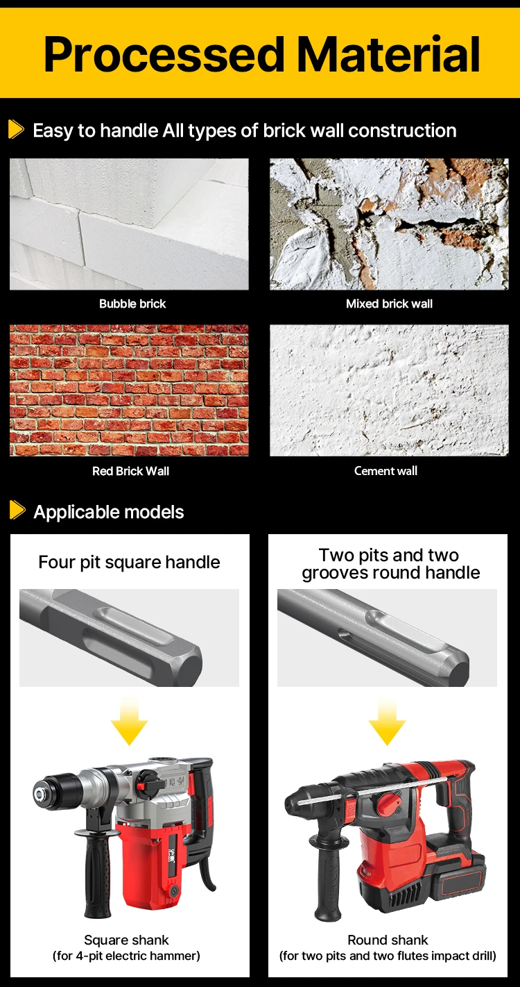 HUHAO 30-350mm hole drill bit for wall bricks bubble brick round shank hole router bit square shank drill bit