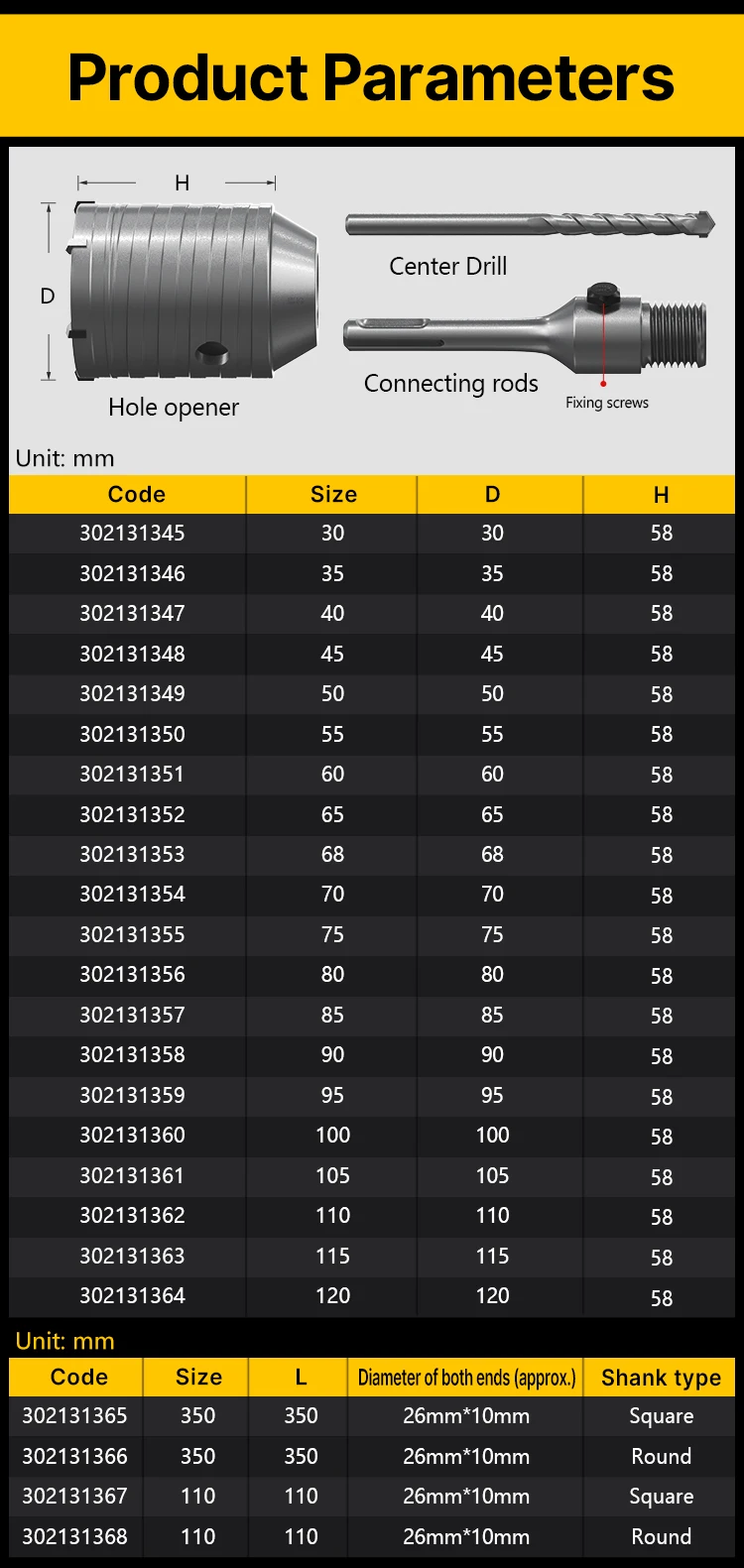 Home » Product Category » Hole Saw » HUHAO 30-350mm hole drill bit for wall bricks bubble brick round shank hole router bit square shank drill bit