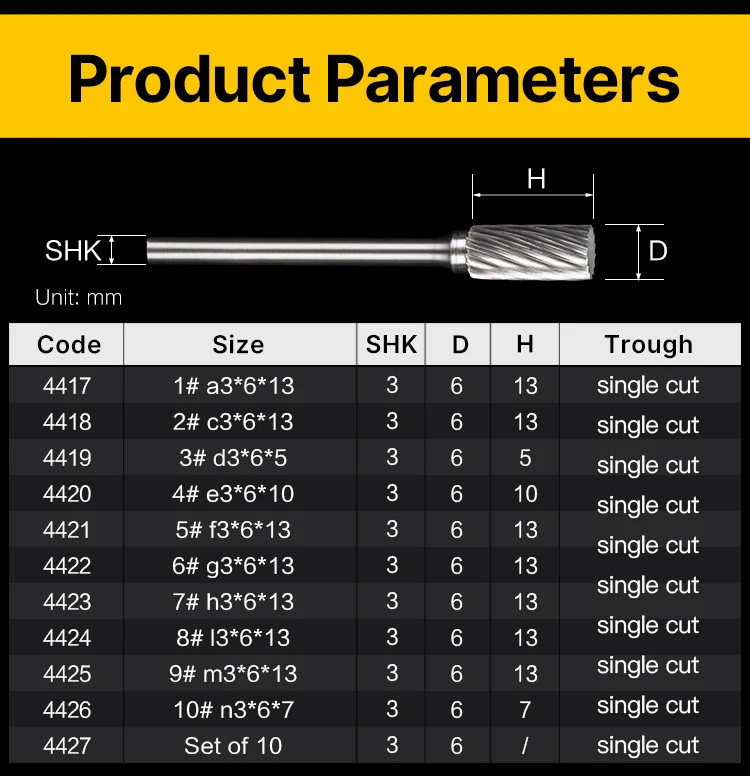Home » Product Category » Burr Cutters » HUHAO 3mm shank Carbide Cutting Tools single cut package in 10pcs tungsten carbide burr sets