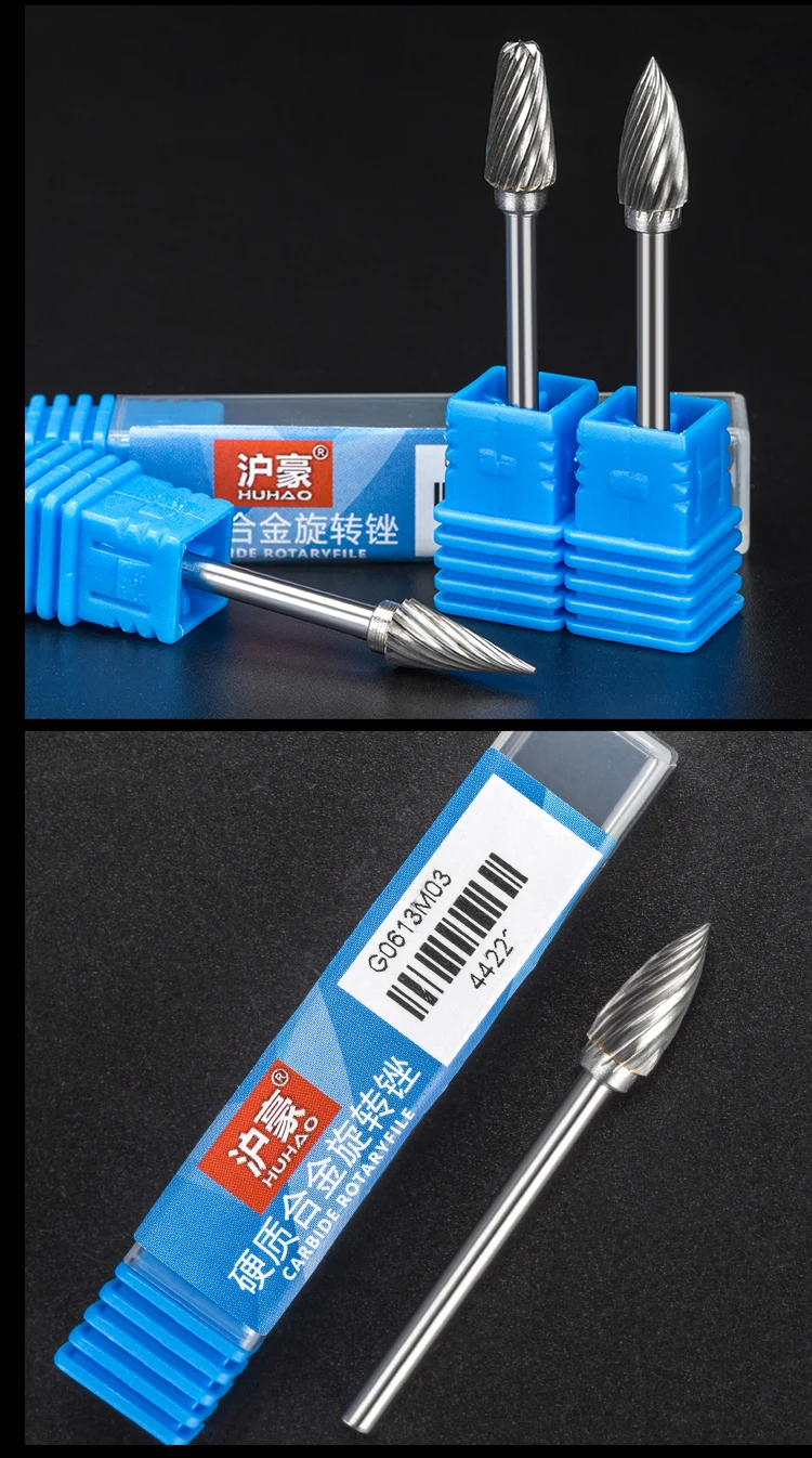 HUHAO 3mm shank Carbide Cutting Tools single cut package in 10pcs tungsten carbide burr sets