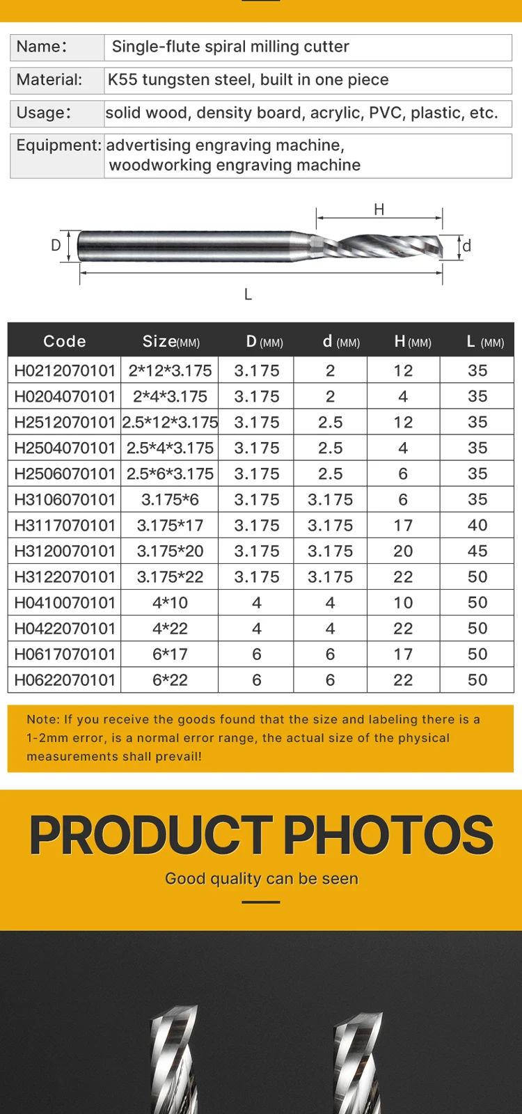 | Shank diameter | 3.175-6mm |
