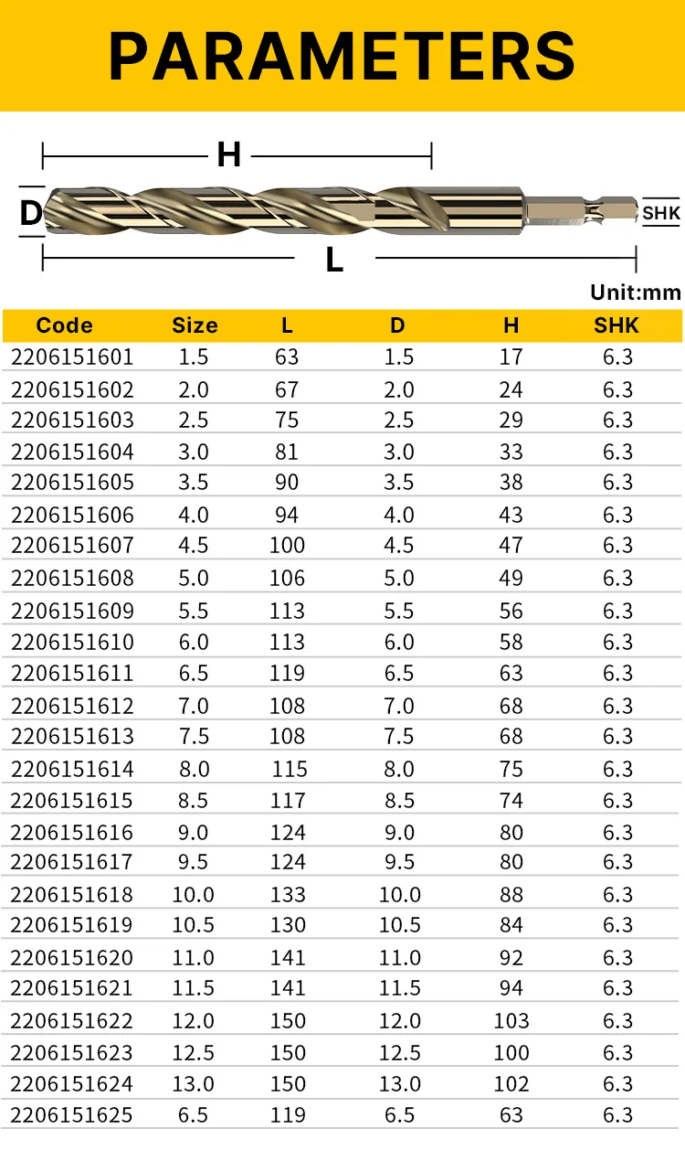 | Shank diameter | 6.3mm |