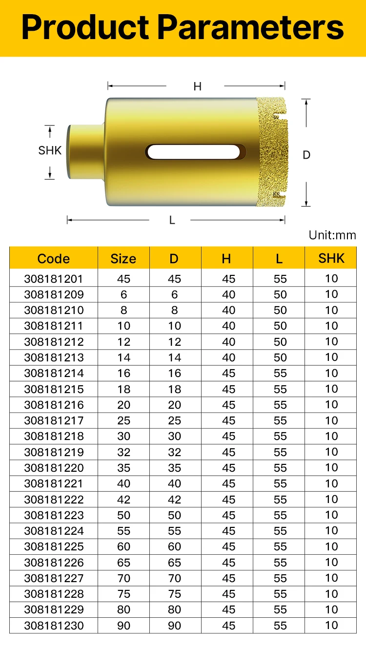 Home » Product Category » Hole Saw » HUHAO 6-45 mm saw diameter ceramic tile drill hole bit carbide 40/45 mm depth hole saw cutter for angle grinder