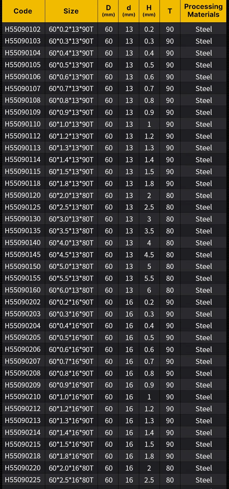 | Hole diameter | 13/16/22/25.4mm |