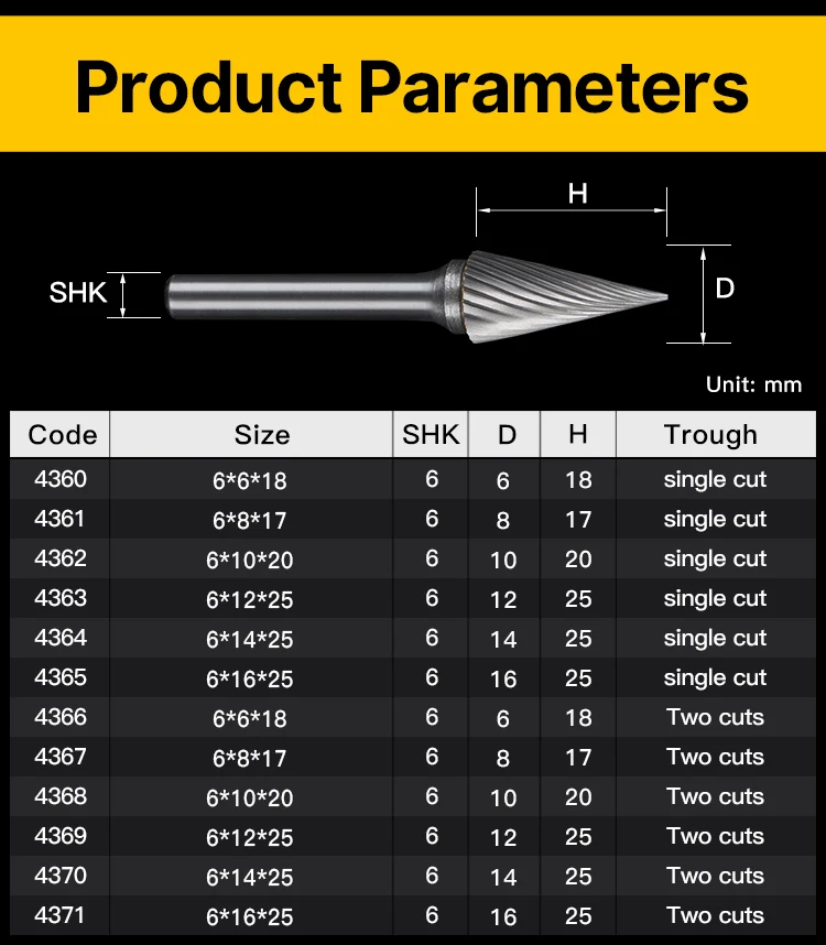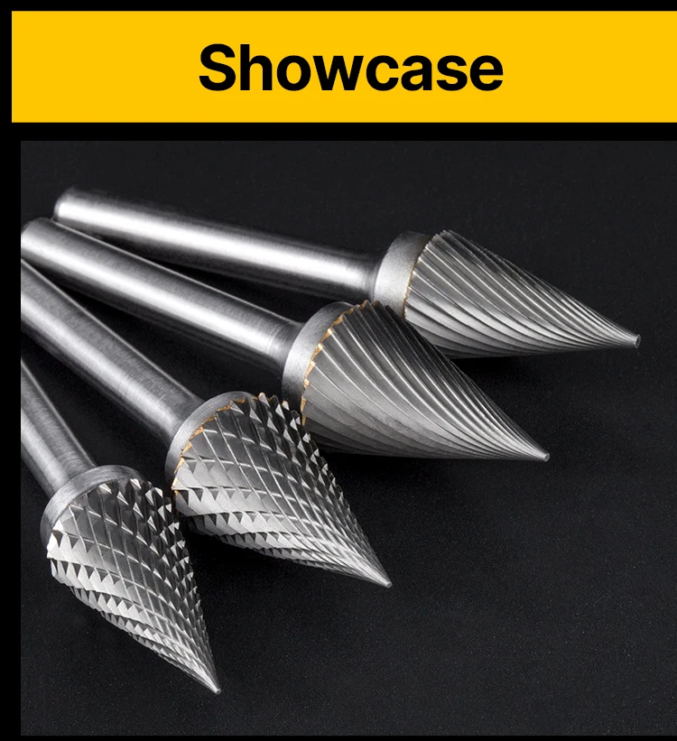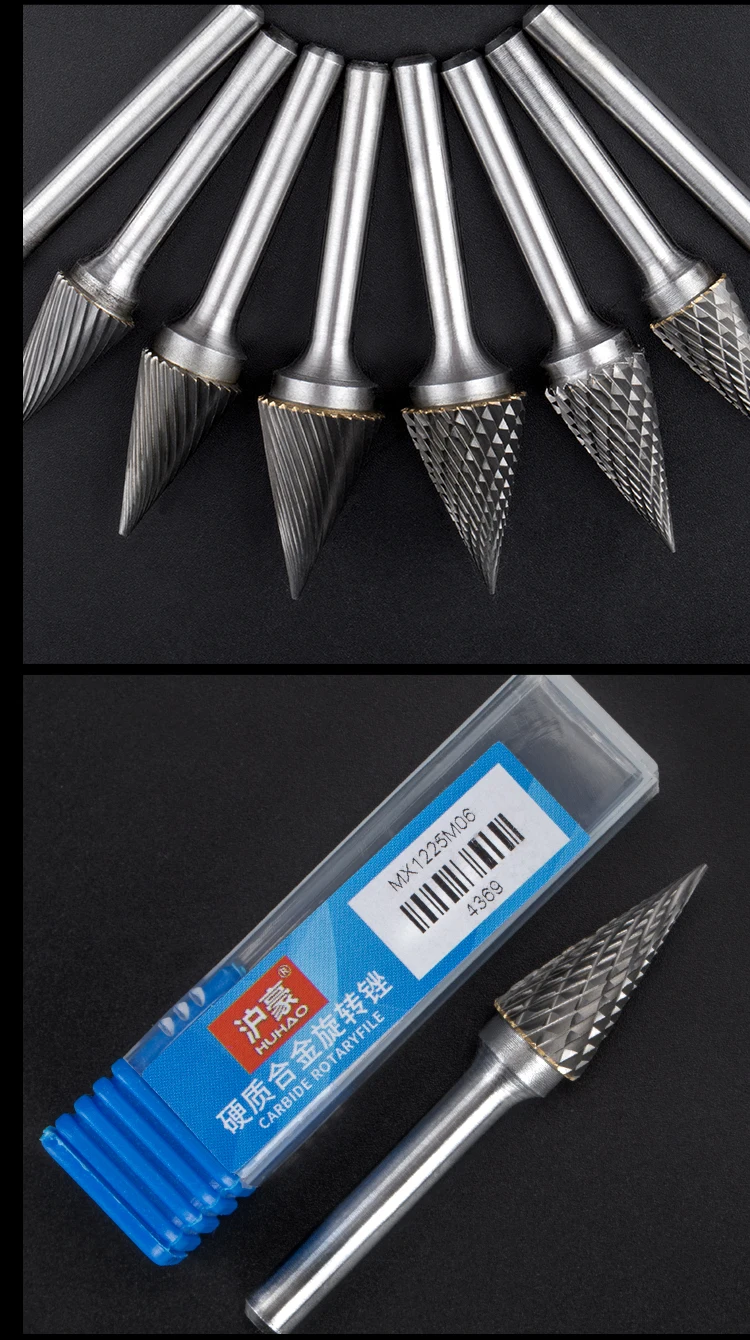 | Application | Widely used for metalwork, tool making, model engineering, wood carving, jewelry making, welding, chamfering, casting, deburring, grinding, cylinder head porting and sculpting. It can freely cut various metals (including hardened steel) and non-metallic materials (such as marble, jade, bone) below HRC65. It can replace the small wheel with handle in most of the work, and no dust pollution. The processing quality is good and the finish is high, and it can be processed into high-precision mold cavities of various shapes. It has a long service life and is ten times more durable than high-speed steel tools and more than 200 times more durable than alumina grinding wheels. |