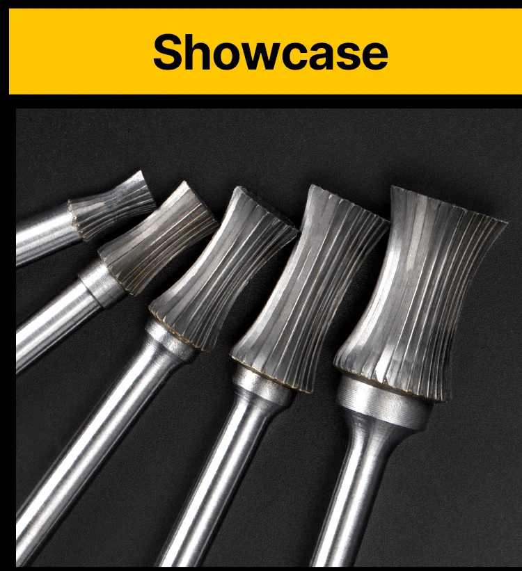 | Application | Widely used for metalwork, tool making, model engineering, wood carving, jewelry making, welding, chamfering, casting, deburring, grinding, cylinder head porting and sculpting. It can freely cut various metals (including hardened steel) and non-metallic materials (such as marble, jade, bone) below HRC65. It can replace the small wheel with handle in most of the work, and no dust pollution. The processing quality is good and the finish is high, and it can be processed into high-precision mold cavities of various shapes. It has a long service life and is ten times more durable than high-speed steel tools and more than 200 times more durable than alumina grinding wheels. |
