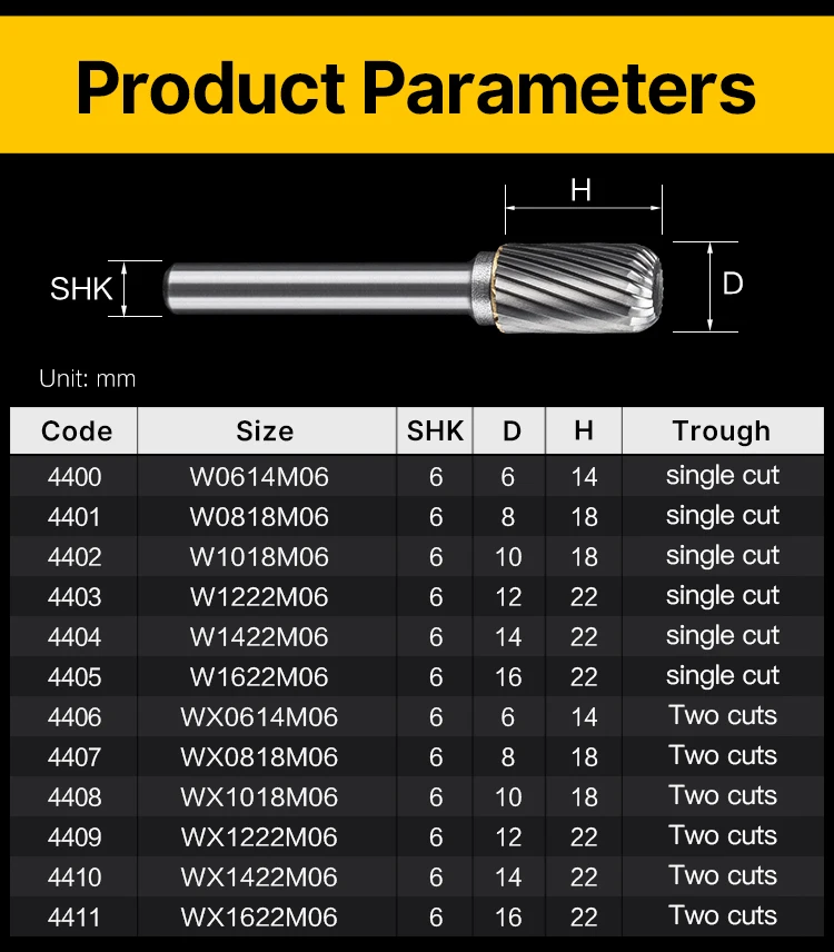 | Application | Widely used for metalwork, tool making, model engineering, wood carving, jewelry making, welding, chamfering, casting, deburring, grinding, cylinder head porting and sculpting. It can freely cut various metals (including hardened steel) and non-metallic materials (such as marble, jade, bone) below HRC65. It can replace the small wheel with handle in most of the work, and no dust pollution. The processing quality is good and the finish is high, and it can be processed into high-precision mold cavities of various shapes. It has a long service life and is ten times more durable than high-speed steel tools and more than 200 times more durable than alumina grinding wheels. |