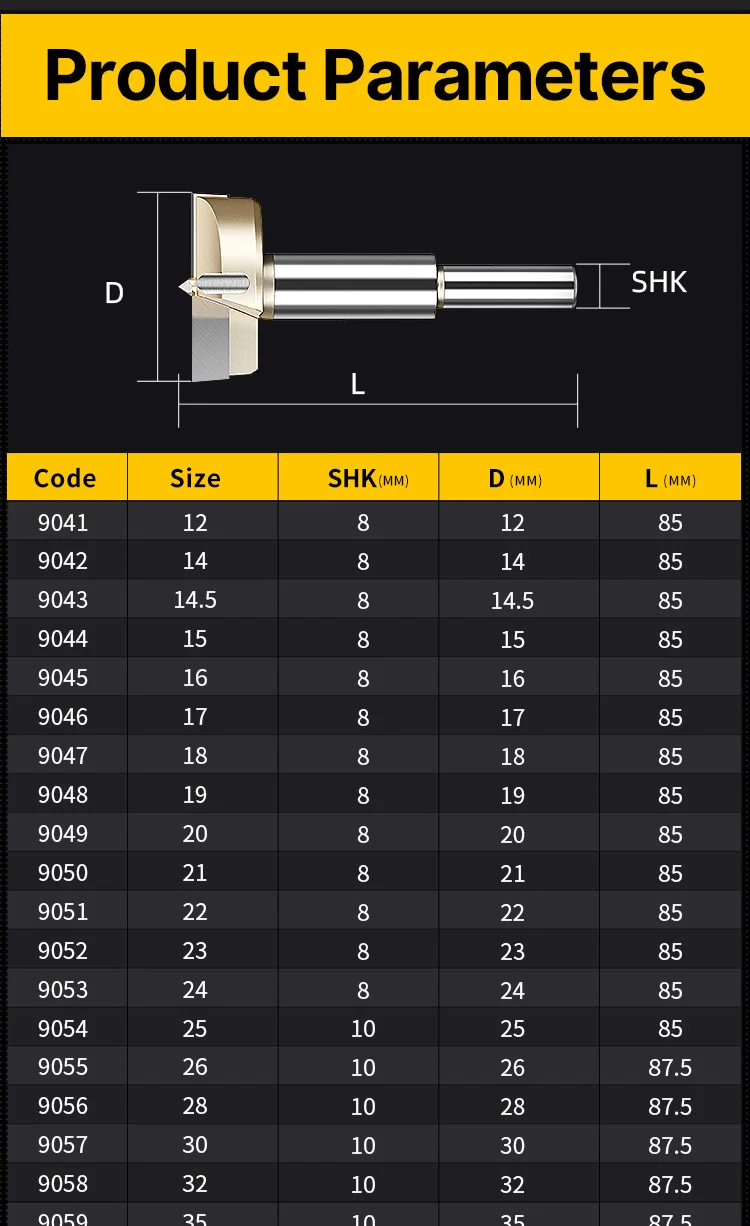 | Cutter diameter | 12-120mm |