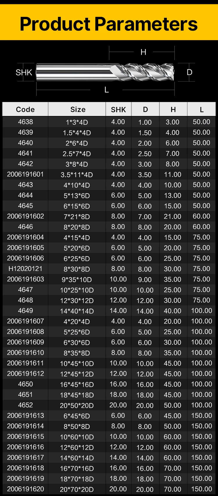 | Shank diameter | 4-20mm |