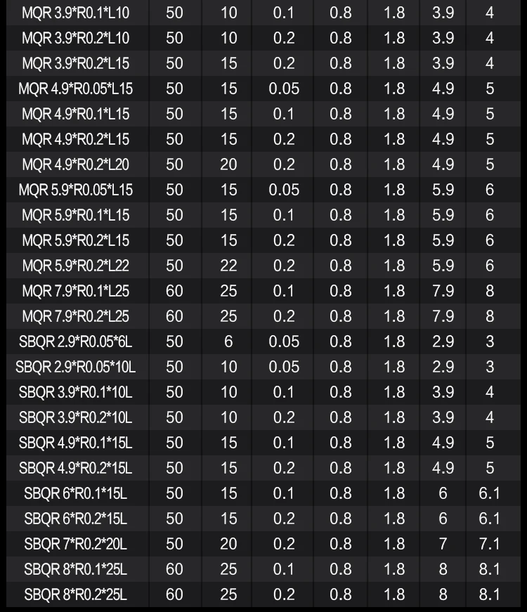 | Shank diameter | 2.9-8mm |