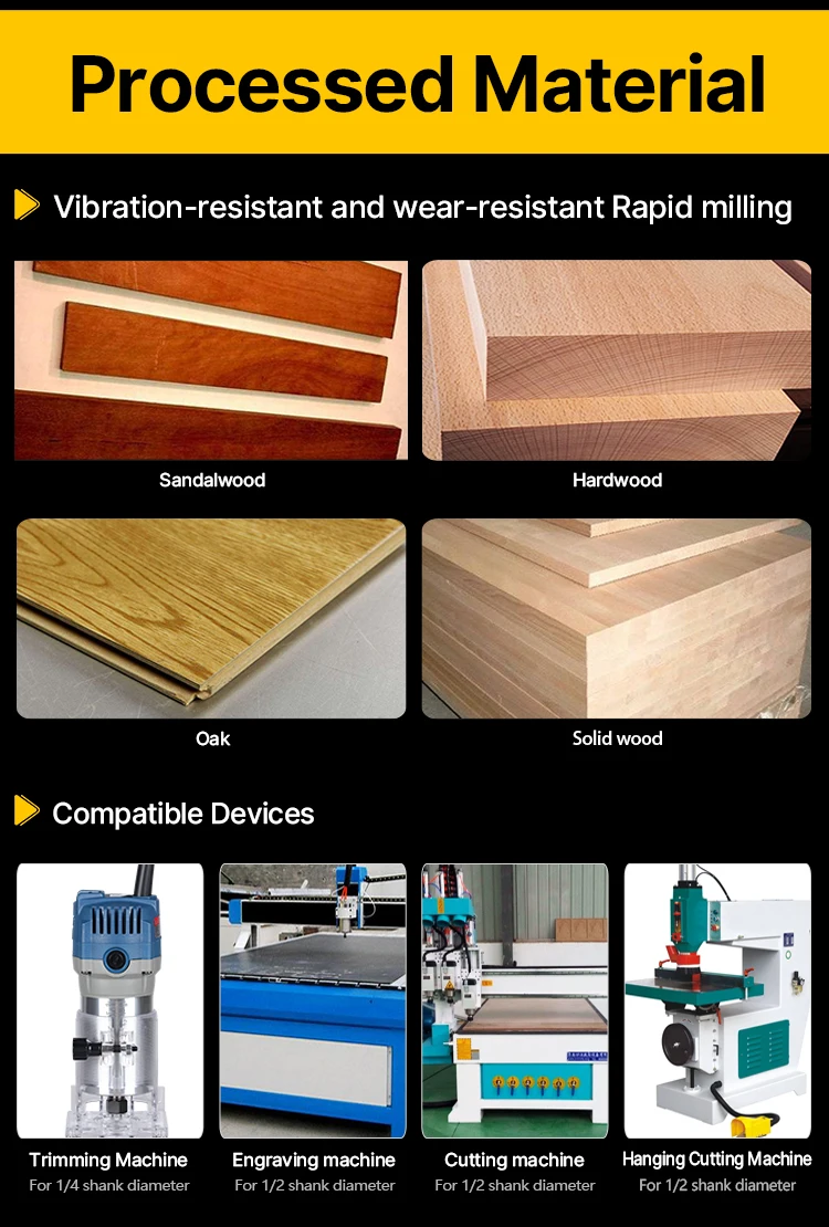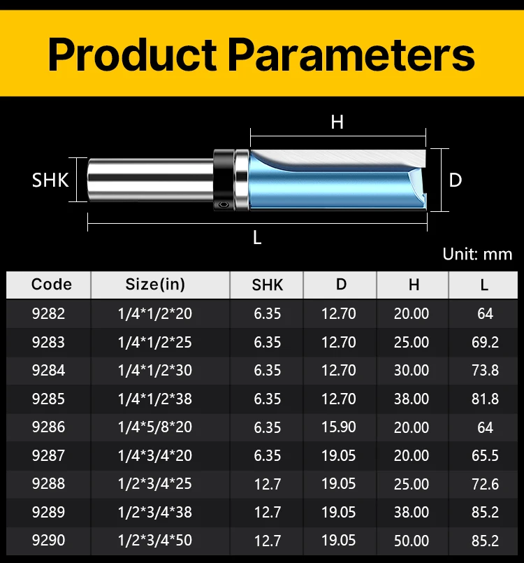 HUHAO Router Bit Solid Router Bit 1/4 1/2 Woodworking Tools Flush Trimming Bit with Bearing