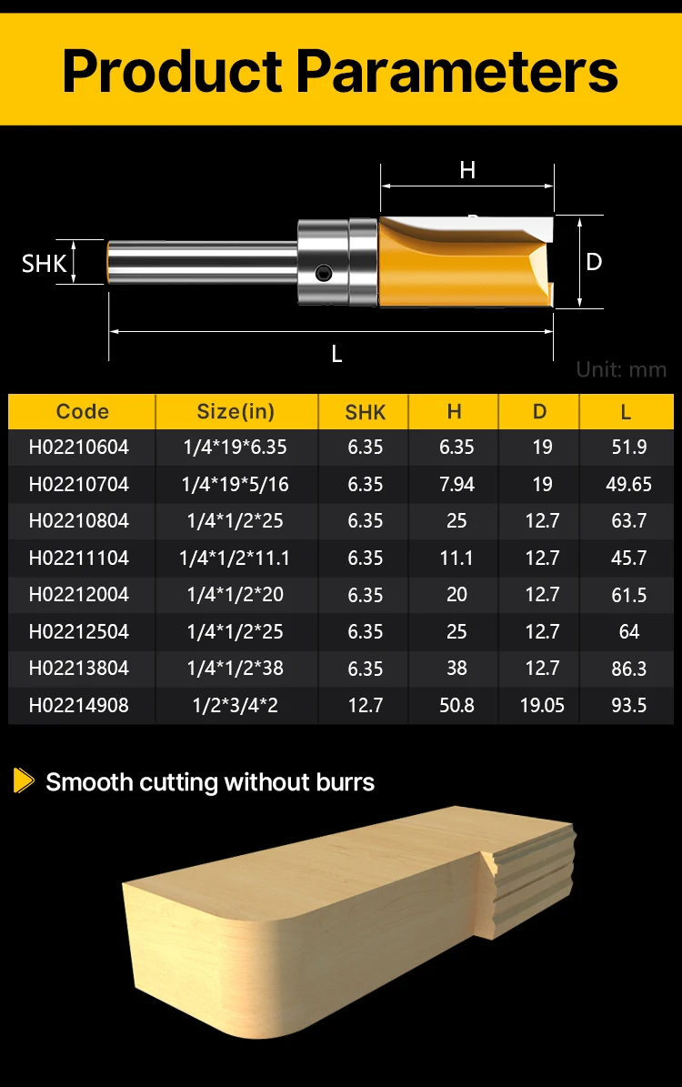 Home » Product Category » Engraving Machine Cutter » Straight Cutter » HUHAO Straight 1/4 Shank Router Bit Double Flutes Carbidetipped Straight Trimming Milling Cutter for Wood Slotting