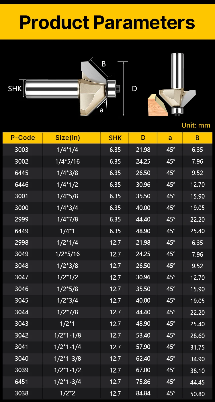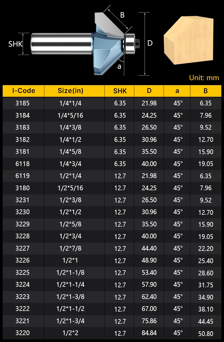 | cutter type | wood bevel trim chamfer cutter with bearing |