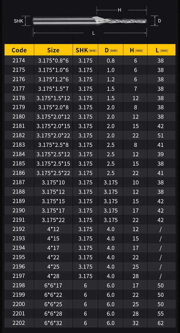 | Shank diameter | 3.175/6mm |