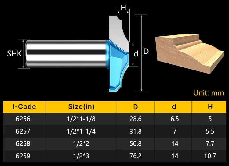 HUHAO roman ogee 1/2'' 30mm Straight Shank T-Slot Wood Router Bit T-track Slotting Woodworking Milling Cutter 6849