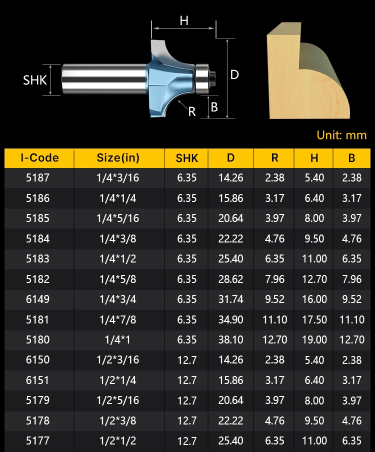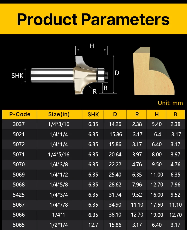 | cutter type | Wood Round Over trimming Bit with bearing |