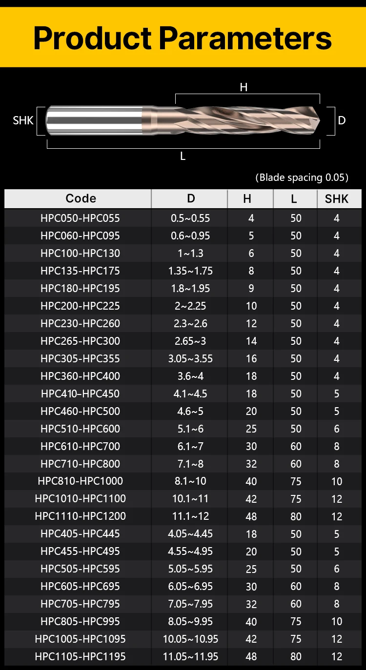 | Drill Bit Diameter | From 0.50-12mm, Each size for per 0.05mm |