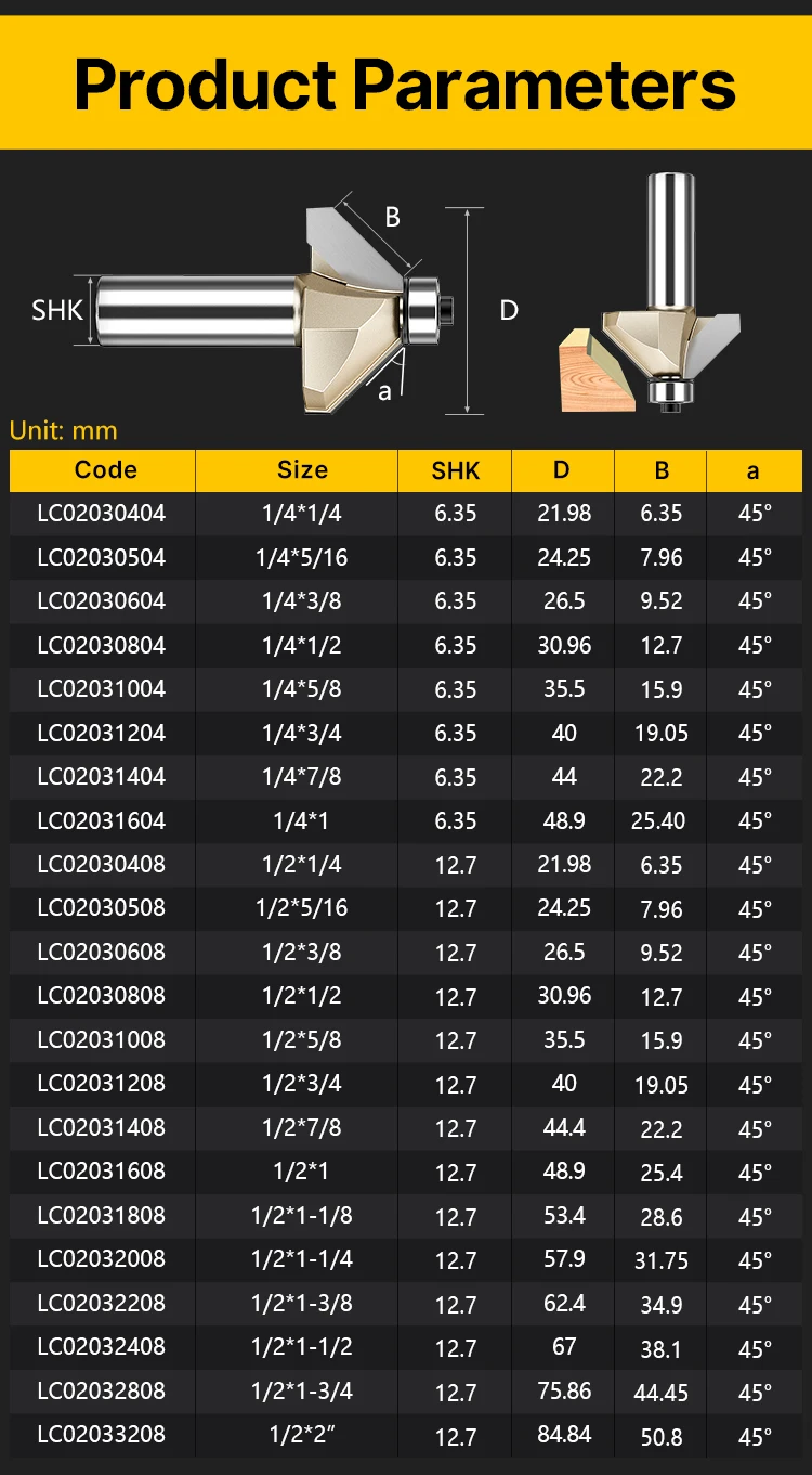 | cutter type | Bevel Edge Forming Chamfer Router Bits with Bearing |